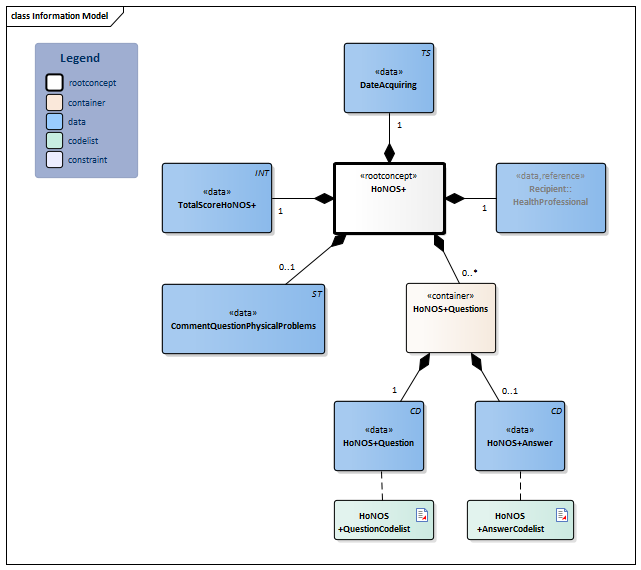 | NL-CM:4.36.1 | Root concept of the HoNOS+ information model.This root concept contains all data elements of the HoNOS+ information model. |