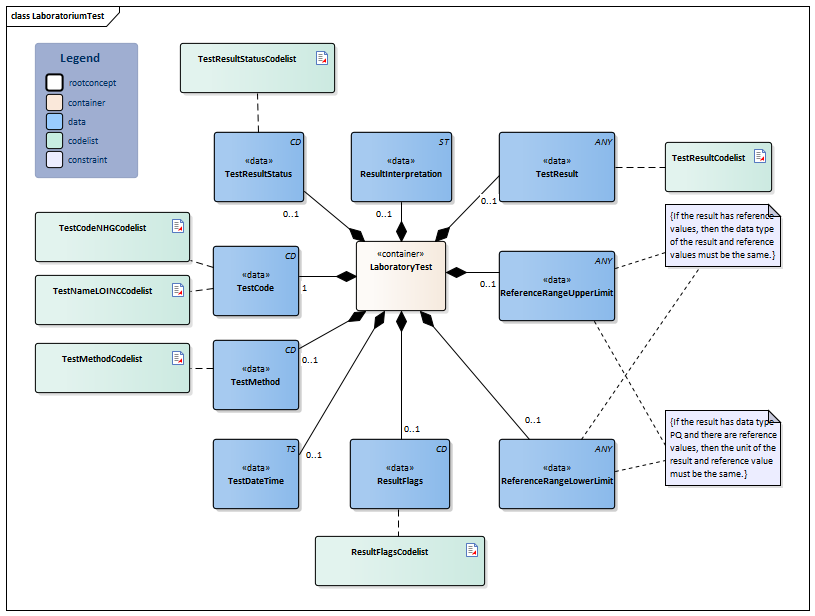 In general, laboratory tests resulting in a value (7.1 mmol/L), ordinal number (++ from series to ++++) or a quantitative result (Low) are recorded using this information model. The TextResult information model is better suited for textual results that are more descriptive in nature and which are longer than just a few words. Both types of tests occur in almost all laboratories.