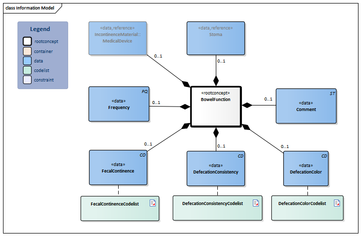 Root concept of the BowelFunction information model. This root concept contains all data elements of the BowelFunction information model.