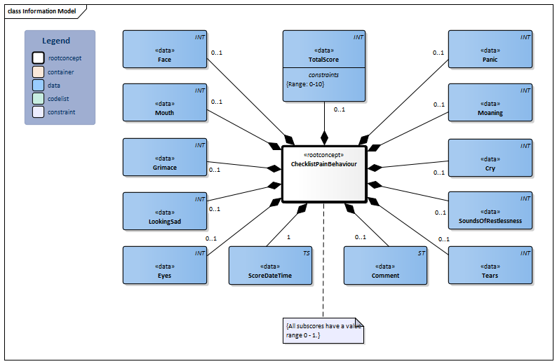 NL-CM:12.17.1 ChecklistPainBehaviour Root concept of the ChecklistPainBehaviour information model. This root concept contains all data elements of the ChecklistPainBehaviour information model.