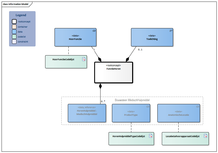 | NL-CM:4.17.4 | 0..* | Het medische hulpmiddel dat gebruikt wordt ter ondersteuning van het horen. |